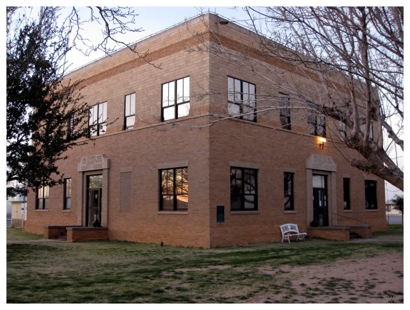 Loving County is the only Texas county to be incorporated twice. It was first incorporated in 1891 by a canal company from Denver, but once the landowners dug further into this incorporation, fraud was found & the canal company fled the area with all county records. The state legislature attached Loving County back to Reeves County in 1897. Oil was discovered in this area in 1921, leading to a population increase. The majority of the population congregated in Mentone, so it became the county seat in 1931. Therefore, Loving County never had an opulent, original courthouse, the above courthouse is their original, opulent courthouse. The Texas historical marker on the courthouse lawn proudly proclaims that Mentone "has no water system (water is hauled in.) Nor does it have a bank, doctor, hospital, newspaper, lawyer, civic club or cemetery." When someone dies, they are transported for burial in nearby Kermit or Pecos. At one time, there was another significant Loving County community, but Porterville now sits as a ghost town, with nothing left behind as everyone eventually moved to Mentone.