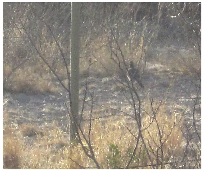 Back at my car, the afternoon was slipping away. I high-tailed it out of the parking lot & back towards the US-180, which brought me here from Texas. I would have liked to take a picture of the stone, Texas welcome sign, but I had to keep moving. As I turned left onto Ranch to Market Road 652, I hit the accelerator and barreled east. This only lasted for maybe a minute, as I noticed a creature scurrying about up ahead...ROADRUNNER! I exclaimed it out loud to myself, with a shocked open mouth & a vigorous fist pump that brought pain to my fingers. I sped towards the bird, which unfortunately was already 20ft off the road. Thankfully there was a clear patch of land to get an extremely marginal picture to remember the moment. I would only get one picture of the bird before it disappeared into the shrubbery and I was left standing on this desolate county road. I gave her one more 2008 US Open Tiger Woods fist pump with both hands and yelling towards the sky. I couldn't believe I finally saw a roadrunner after all this time in Texas.
