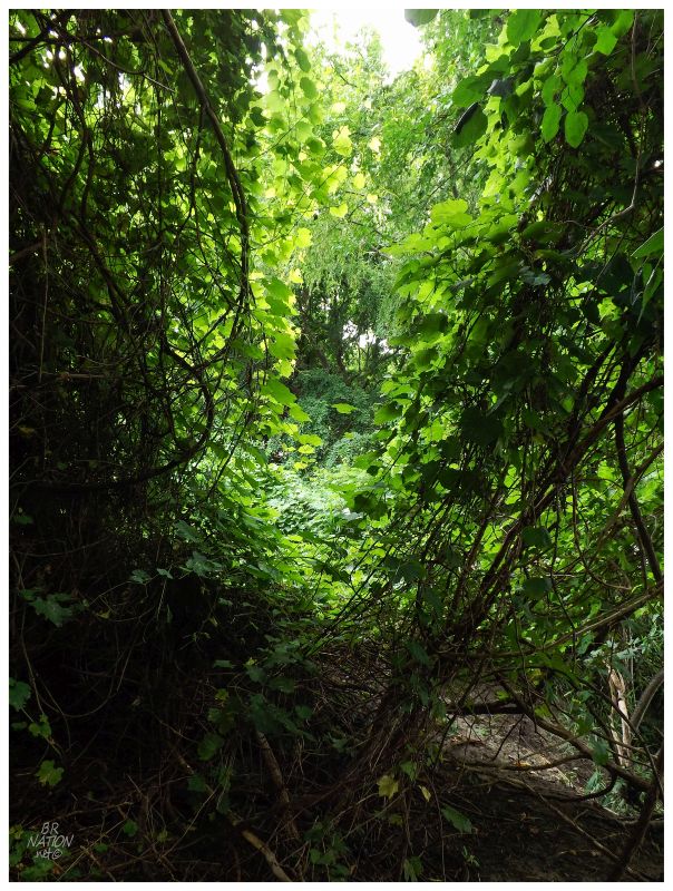 It was getting into the afternoon though, so Donnie & I continued down a pathway into the woods to the south of the shipwreck lagoon. This pathway and the hydro poles would follow where there used to a train line from Grosse Ile onto Stony Island, where train cars would then be put on a ferry to go to the area of General Chemical in Amherstburg. A train car bridge-ferry is an interesting bit of history, but you probably haven't heard about this because the year was 1880 and the bridge was demolished in the 1920s.