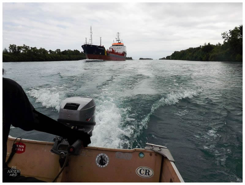 Nailhed was more concerned with the recreational boaters who love flying through this straight channel, but it was still harrowing to be in his boat & see the giant wave of displaced water from the freighter heading towards us.