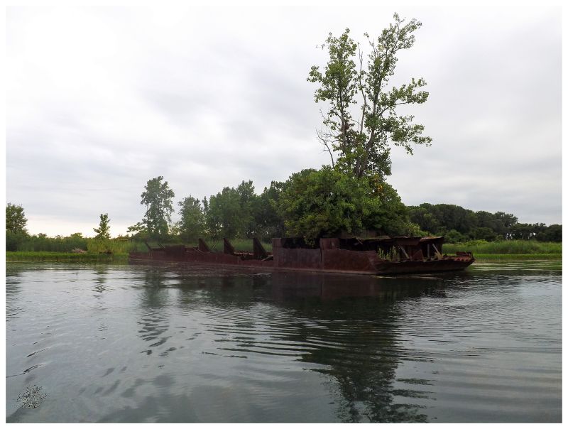 The Dunbar & Sullivan Dredging Co of Powder House Island dynamite storage fame, based their operations upon and owned Stony Island. In this back lagoon of the island by their machine shop or offices, they also left behind about 20 barges and other vessels.
