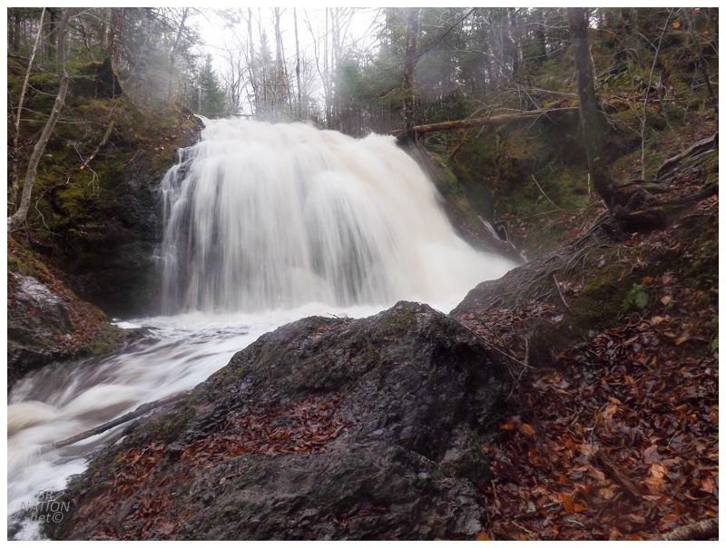 Although I've never visited any of them in my various hockey updates about Cape Breton, this area is home to many impressive waterfalls. Hoping to show Isy something besides lighthouses and abandoned homes, I noticed a fortuitous waterfall marked right in the area where I'd want to cut from Big Ridge over to Albert Bridge.