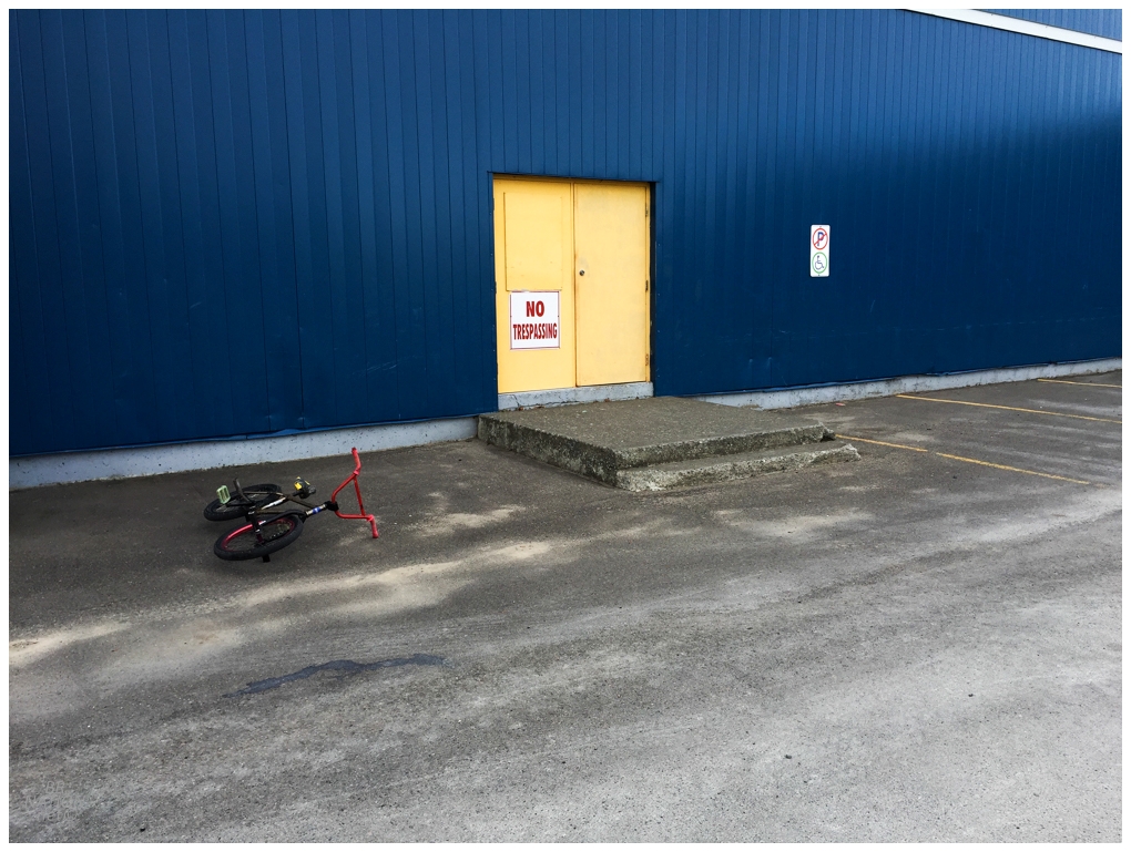 I always thought this would be a great indoor riding spot to get away from winter with the power on and hopefully no alarms, but we ended up having a winter where I got a fair amount of riding in, I was travelling to the mainland, and I still had responsibilities to watch Kingsley on Saturdays. In addition, there really wasn't a great way to sneak a bike into this property without 100 cars driven by small town drivers, wondering why the hell an unfamiliar grown man is carrying a bmx to the back of an abandoned building in January.