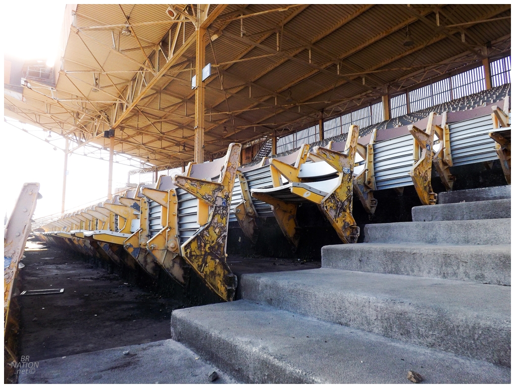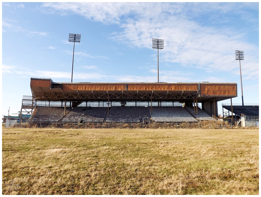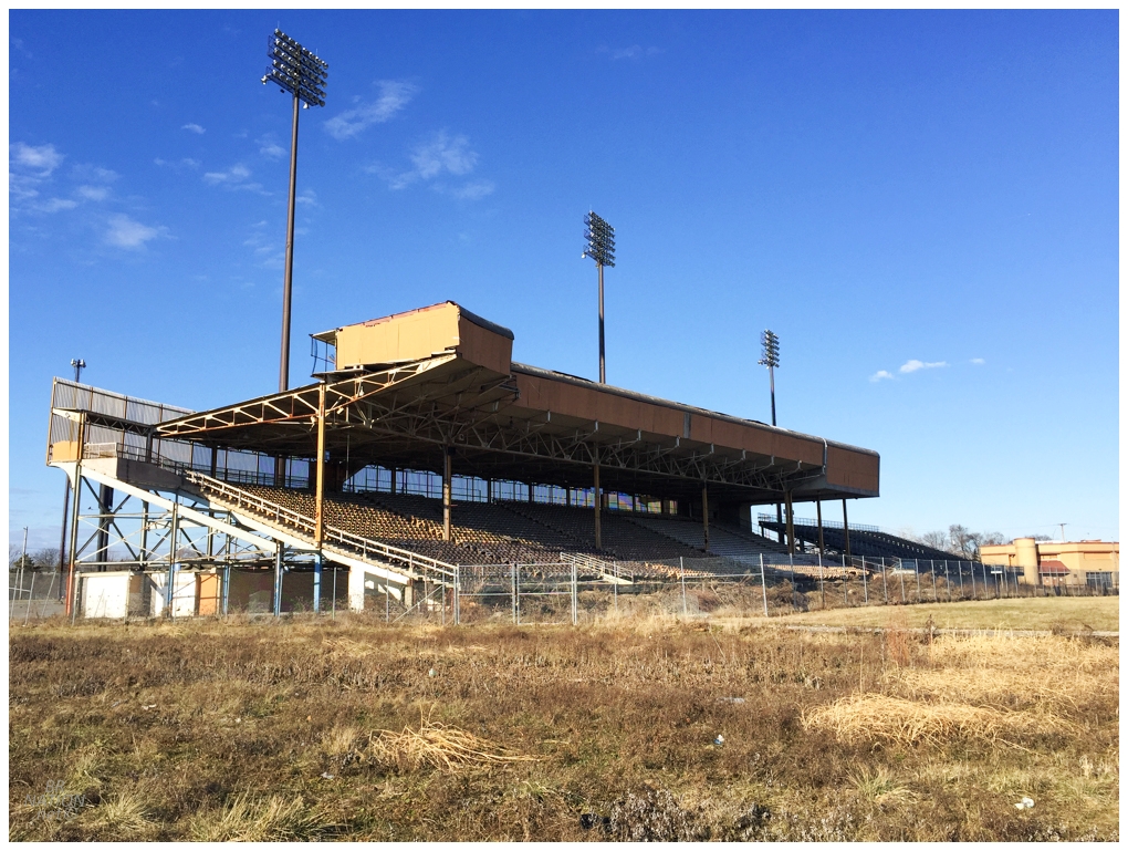 Before Huntington Park even opened in 2009, a plan was presented to turn Cooper Stadium into a racetrack. City council approved the zoning change and in 2014, two-thirds of the stadium was demolished and only the area behind third base was left standing. A picture from 1983 shows the entire stadium and you can now see how the remaining part could be use for racing grandstands.