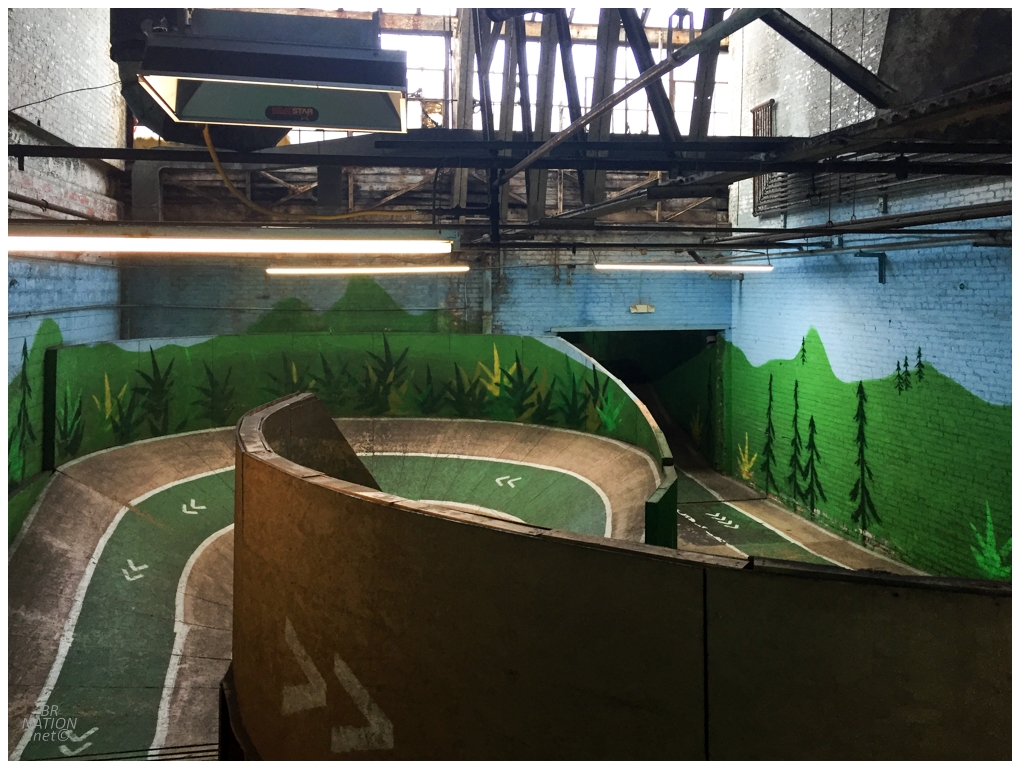 From there, there were offshoots into hallways and other rooms. I followed a sign through a hallway and ended up in a smaller room with wallrides and an elevated, downhill pump track; from there, there were two more hallways leading off into other rooms, that led into other rooms, and it just kept going and going. It was every bike rider's old factory dream, but actually brought to life. And when you add in my love of exploring old factories, I would have been happy enough riding my bike through here without any ramps! Let alone being presented with opportunities to ride cool ish at every turn. |