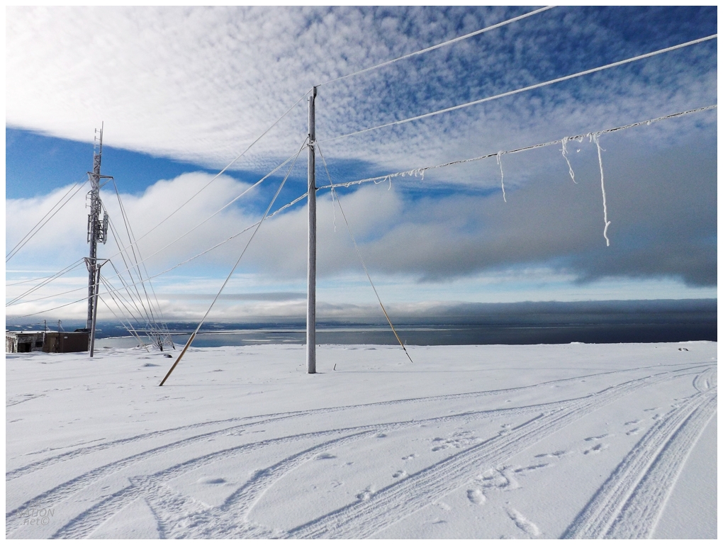 This is Table Mountain, a scenic plateau where a private road leads up to a federally-owned radar dome (it used to be an American radar site). I posted about it all the way back in 2009 and figured on a pleasant day like this, it would make for a great location to go snowshoe.
