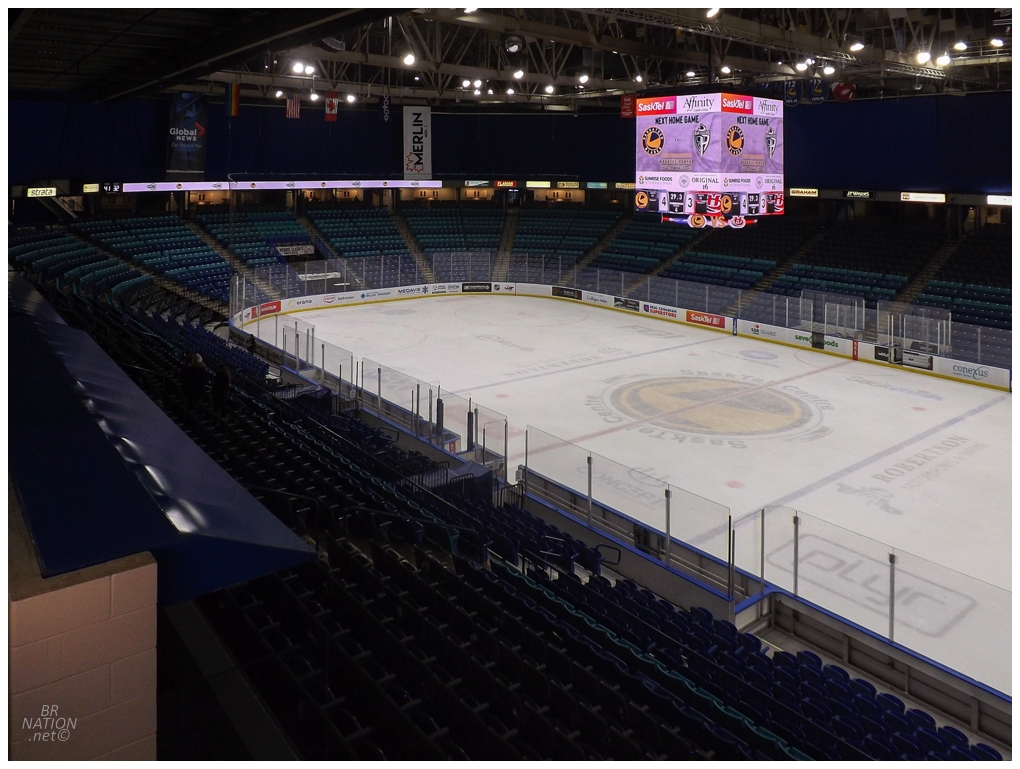 The SaskTel Centre is far too large for WHL crowds, so the upper deck is blocked off with big blue sheets.