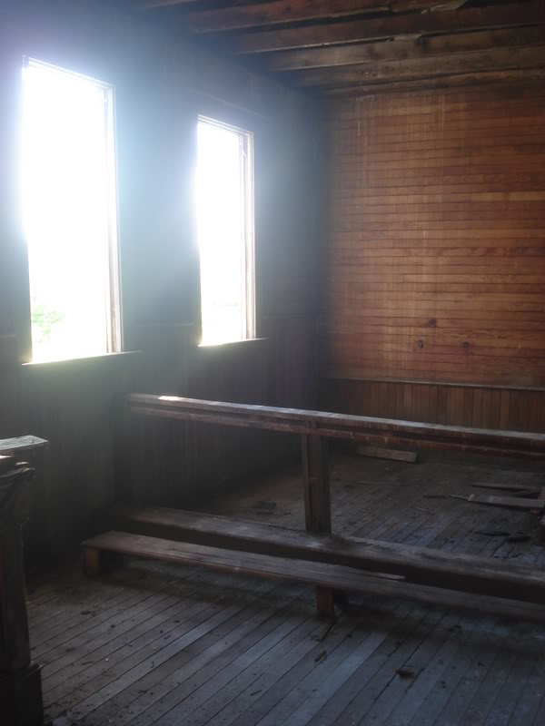 The Roman Catholic (at left) was in use from 1944 to 1967 & the United Church (at right) was in use from 1932 to 1961. Both churches sat for over 3 decades, decaying away.