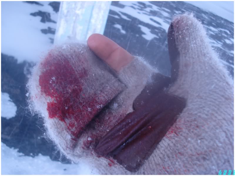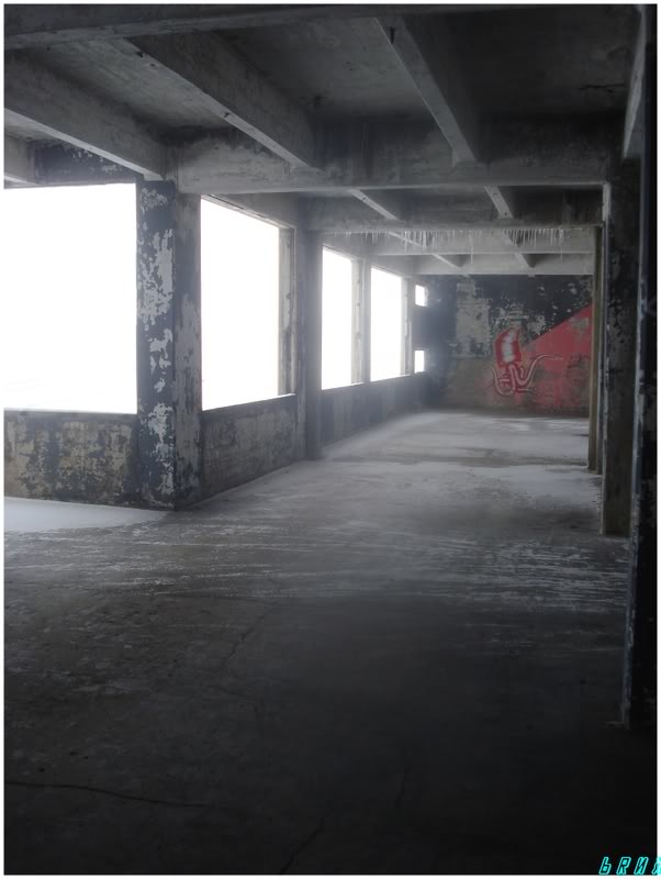 That's where I went to grab my camera and felt my hand almost submerged in a thick liquid. I took my glove off to realize that the window lining had taken quite a bite out of me. Great. I inspected it and put my glove back on; I wasn't going to bleed to death - so why not check out the building that would forever leave me with a reminder upon my skin?