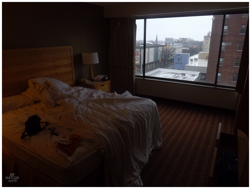 With a sketchy mix of reviews, I was pleased to walk into my room and find a perfectly acceptable space. Sitting down on the bed to check if the game started at 7 or 730, apparently it started at 4pm? Oh shit I better get going! Wait, the game is in Kitchener? I paused and thought about how I'm not that stupid to confuse which team is the home team.