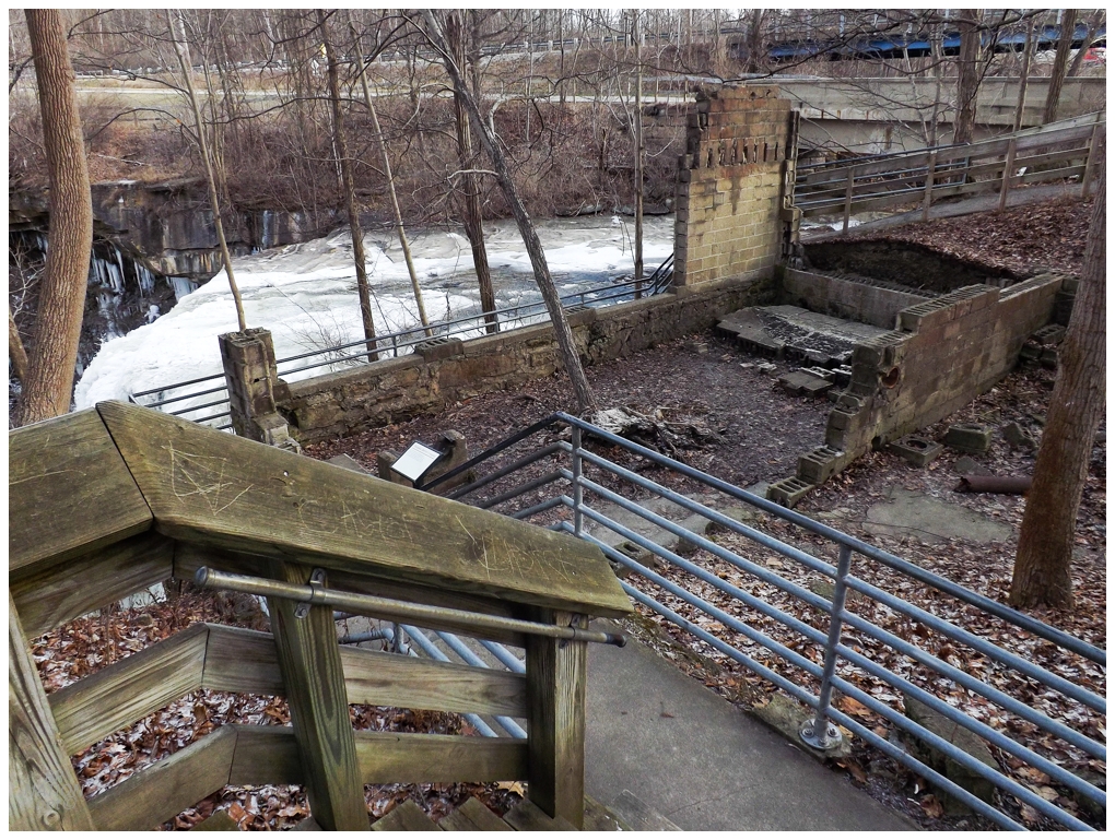 George Wallace built a sawmill on the other side of these falls in 1814. Soon after, a whiskey distillery, grist mill, woolen mill and a dozen houses were constructed in what was known as the village of Brandywine. George then passed on his property to his sons, who formed the Wallace Brothers Company that thrived here for the next 30 years.