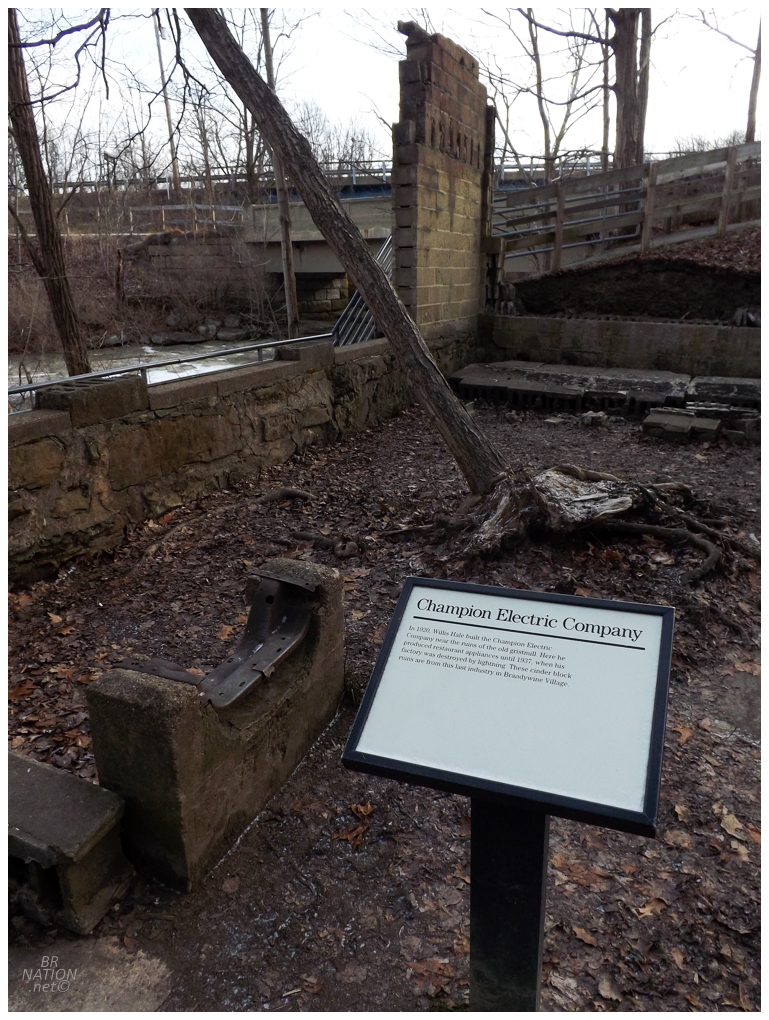 The above ruins are from the Champion Electric Company. The only other markers of Brandywine left are a few foundations in the woods and the farmhouse of George Wallace's son James (now the Inn at Brandywine, a B&B).