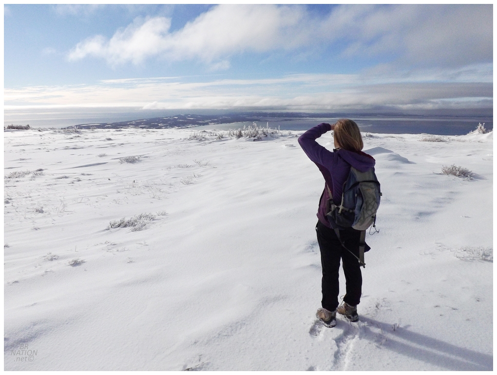 This is Table Mountain, a scenic plateau where a private road leads up to a federally-owned radar dome (it used to be an American radar site). I posted about it all the way back in 2009 and figured on a pleasant day like this, it would make for a great location to go snowshoe.