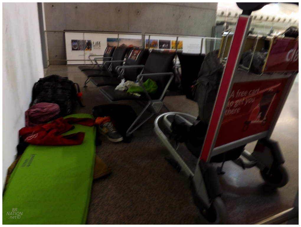 Thankfully I was able to find an alcove next to an area closed for renovations, where it was so dark that the picture came out blurry in the morning. Or maybe I was just groggy and discombobulated. |