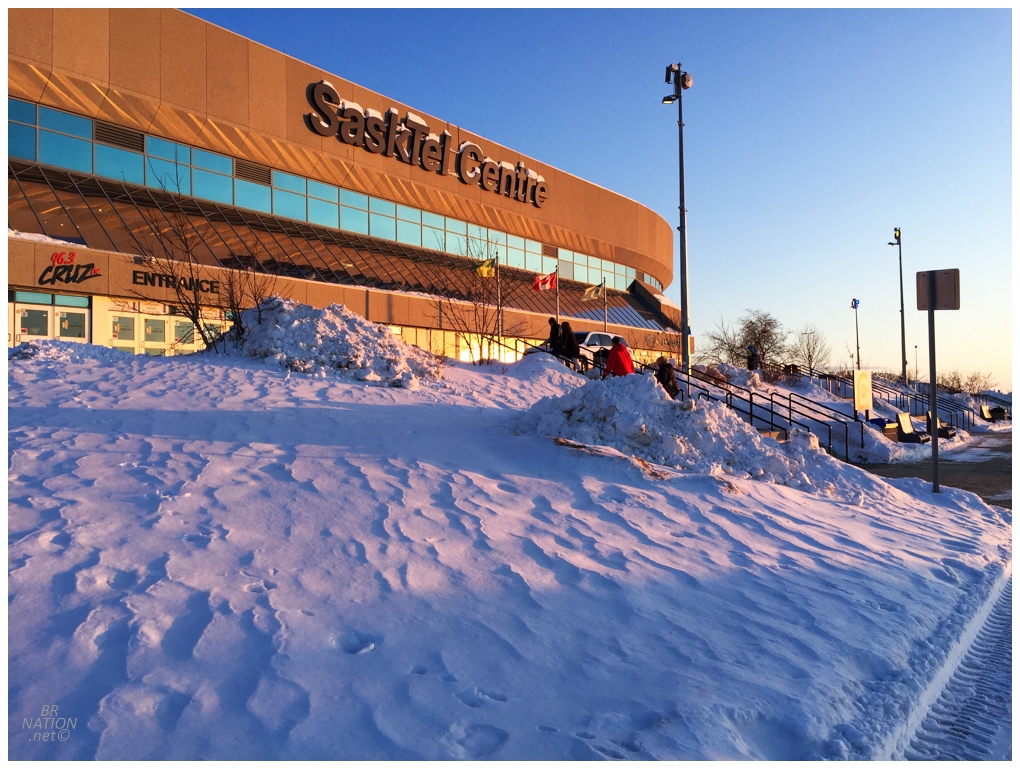 Finally reaching a turnoff for a snow-cleared parking lot, here it was, the SaskTel Centre! WHL arena #2! |