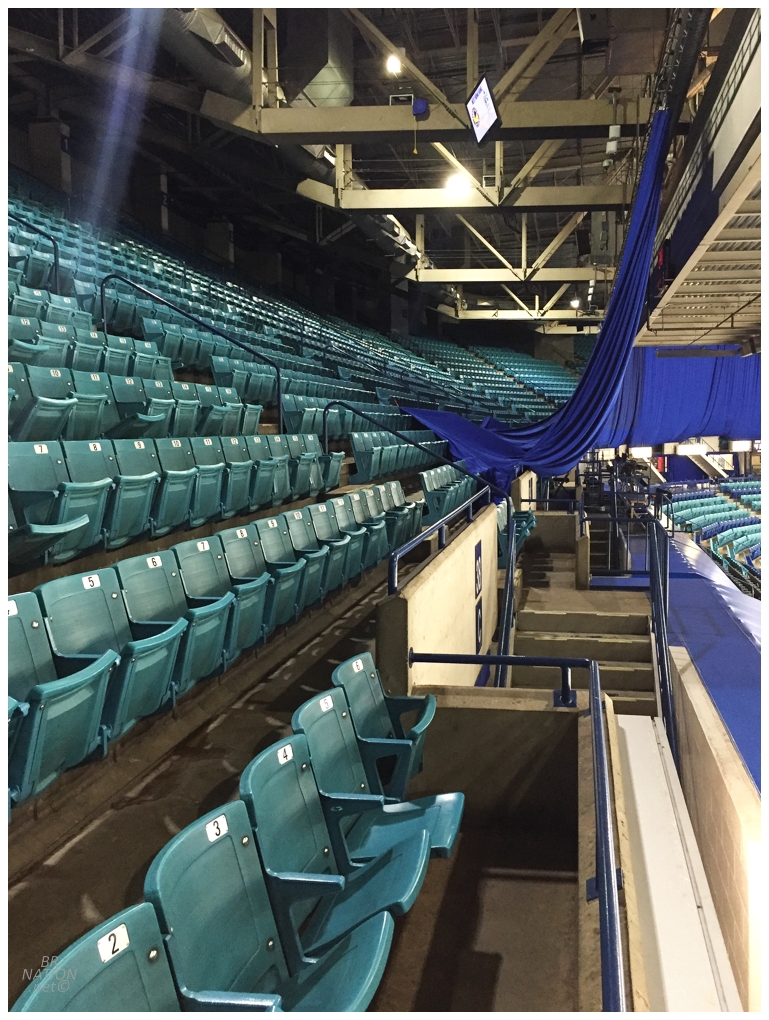The SaskTel Centre is far too large for WHL crowds, so the upper deck is blocked off with big blue sheets.