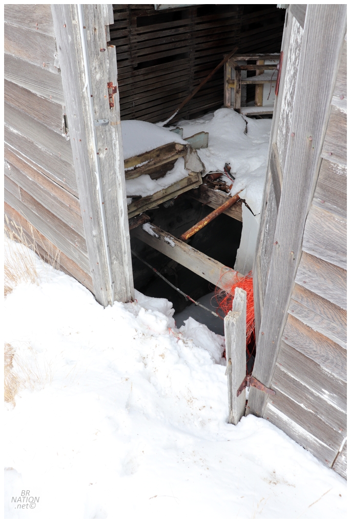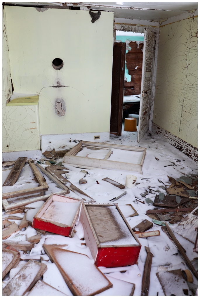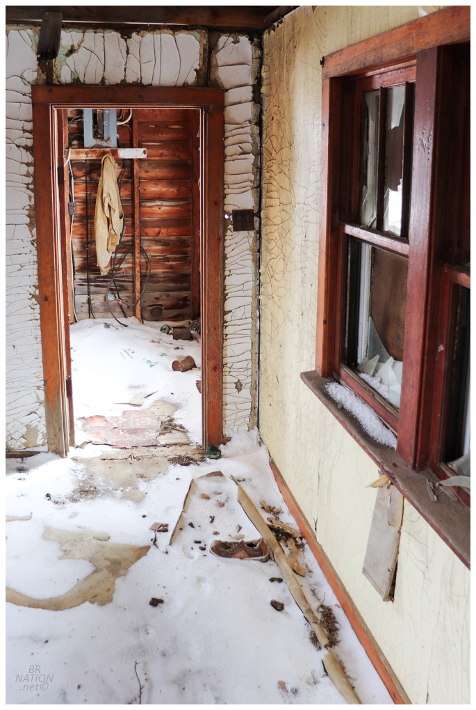 I was only inside for a couple of minutes before a car rolled up and parked behind my car. Quickly scurrying back down to the main floor and out the back door so I could claim I wasn't inside, the guy in the car was just checking if I was okay and hadn't broken down. "Nope, just taking some photos of this old house." "Okay, be safe."