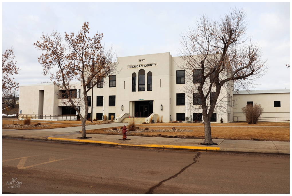 Down the street was a beer store with faded lettering that said Welcome Canadians (it didn't show up well enough in photos) and then a few streets back from the gas station was the fine Sheridan County Courthouse. |
