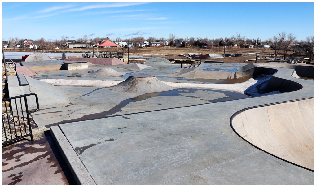 My motel's parking lot was icy with a light dusting of snow, so not only did I skip checking out Glendive's Skatepark, I also dawdled about town and waited for the sun to come out and the temps to rise.