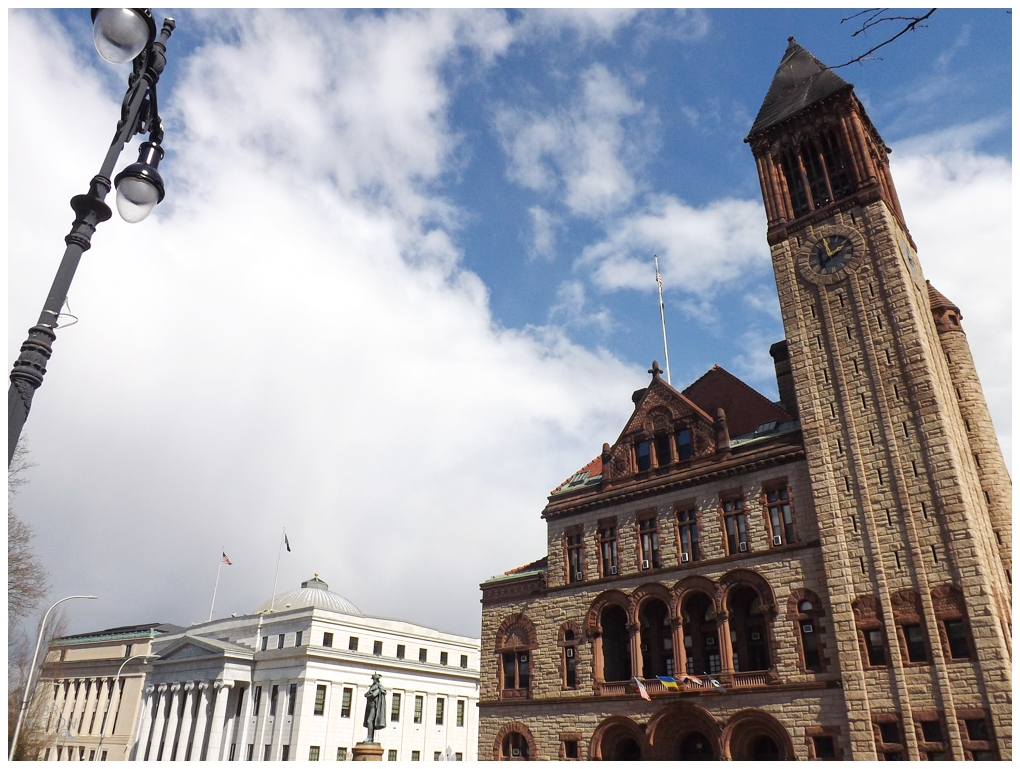 The sun also highlighted the gorgeous sandstone of Albany's old county courthouse. |